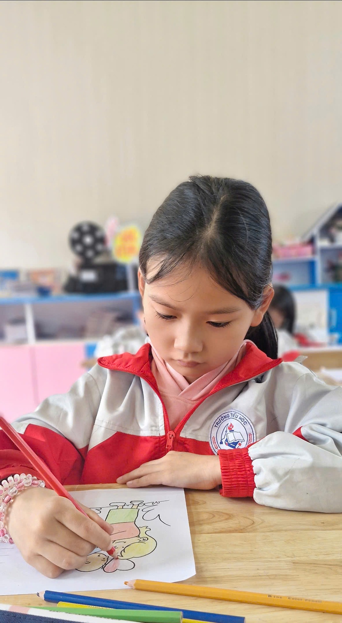 Mỗi nét vẽ, mỗi bông hoa giấy trang trí đều chứa đựng sự tỉ mẩn và tâm huyết của các em. Đáng quý hơn cả là những lời chúc ngây thơ nhưng đầy chân thành được nắn nót viết lên, là nhịp cầu kết nối tình cảm, giúp các em học cách bày tỏ lòng biết ơn đối với những người phụ nữ đã luôn tận tụy chăm sóc và dạy dỗ mình. Đây chính là bài học về đạo đức, về sự thấu hiểu và sẻ chia mà nhà trường luôn chú trọng bồi đắp cho học sinh.